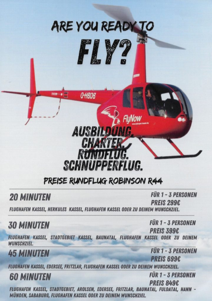 Flugzeit ca 8 – 10 Minuten Mindestpersonenzahl 3